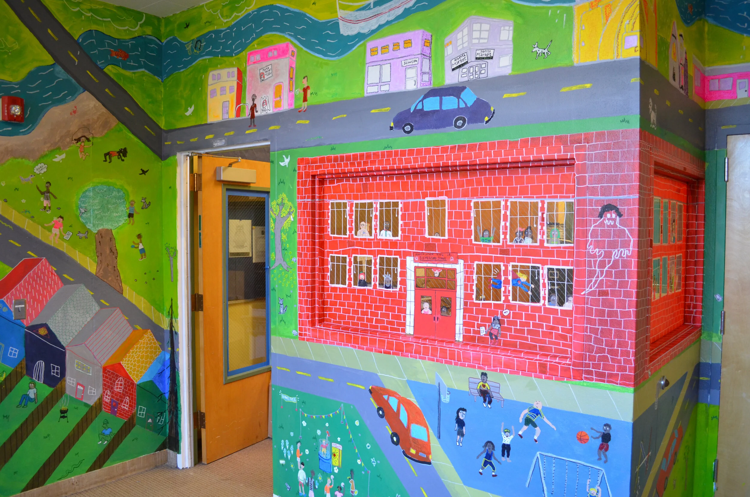 I designed a mural for a public school with my friend Ralph Pugay and several middle school students.
