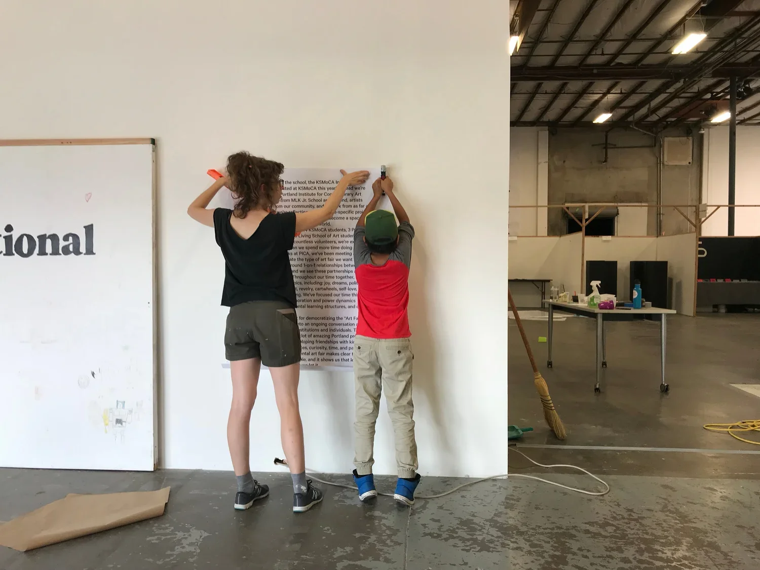 The 2018 KSMoCA International Art Fair was organized by Harrell Fletcher and Lisa Jarrett, co-curated by Roz Crews and Amanda Leigh Evans, and produced in collaboration with MLK Jr. School students, PSU students, and community partners. This kid-scale art fair, hosted this year by the Portland Institute for Contemporary Art, was the culmination of a special 3-week summer program that paired each booth exhibitor with 3rd-7th grade MLK Jr students and PSU students, who participate as gallerists, artists, exhibitors, and curators in artistic and curatorial projects.